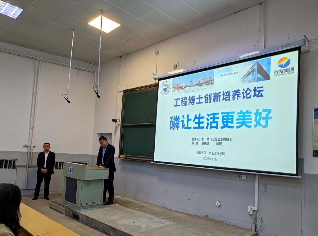 2023年4月7日下午,研究生院、太阳成集团tyc122ccvip联合在虎峪校区梅花教室举办工程博士创新培养论坛(二),2022级工程博士、兴发集团总经理助理李防作专题报告。研究生院经理姚晓红、副经理王俊峰、矿业工程学副经理王开出席论坛;董宪姝科研团队及公司师生代表听取报告;公司党委书记巴大志主持报告会。