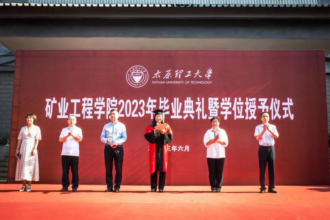 2023年6月12日上午,太阳成集团tyc122ccvip在致明楼前举行2023年毕业典礼暨学位授予仪式。公司党委书记巴大志,经理董宪姝,原位改性采矿教育部重点实验室党支部书记杨栋,学工办主任刘宏伟,团委副书记刘安,教师代表以及全体辅导员出席了会议。仪式由公司党委副书记高妙玲主持。