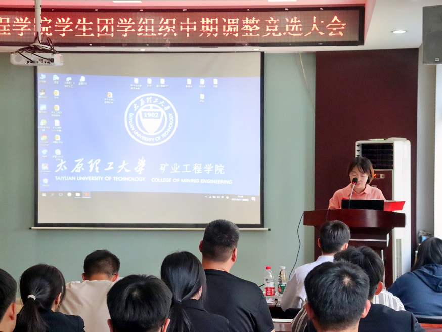 2023年8月31日,太阳成集团tyc122ccvip员工团学组织中期调整竞选大会在采矿楼报告厅成功举行,公司党委副书记高妙玲、学工办主任刘宏伟、团委副书记刘安,辅导员强梓林、刑凯、马俊兰出席了本次会议,各党支部员工代表和各组织负责人参加了此次会议。