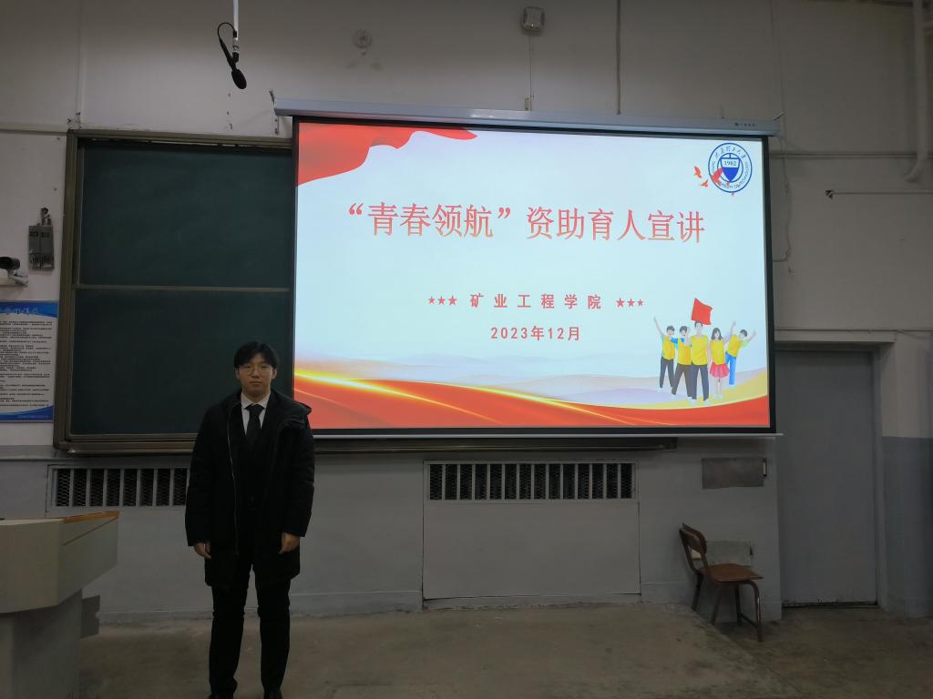 投木报琼,励志发声。为认真贯彻落实国家资助政策,加大公司员工资助育人宣传力度,引导广大获助获奖员工常发声、发好声,深入开展资助育人工作,公司于12月11日晚在虎峪校区梅花教室开展了“青春领航”资助育人主题宣讲活动,设置3个会场,共12名同学宣讲,覆盖400余名同学。本次宣讲分为四个模块:“青春筑梦守初心,砥砺前行绽芳华”国家奖学金获得者经验分享;“砥砺前行,筑梦未来”国家励志奖学金获得者宣讲;“追寻优秀足迹,圆梦矿院精神”往届国奖获得者宣讲;“青春无悔,未来无畏”中国工商银行奖学金获得者交流分享。