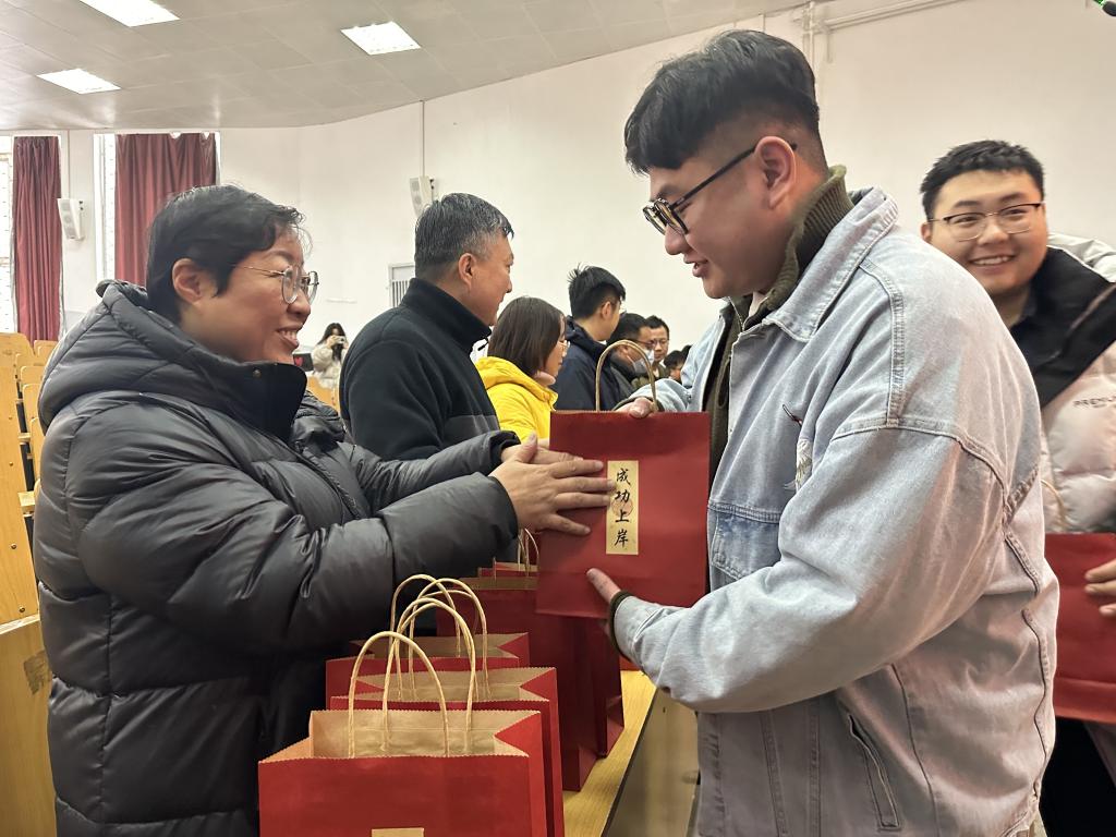 高妙玲主持活动开幕并对考研学子表示了热切关怀和真切祝福。她表示公司党委高度重视,希望把党委的深情,老师们的温情和员工们的真情都送给大家,也希望大家把感恩、感谢、感动化为动力,不负期待,希望让这个下雪的冬日充满温暖!巴大志对同学们表达了由衷的祝愿,希望大家都能够成功上岸,进入理想的学府深造;鼓励大家在面对考试压力时调整好心态,从容应考。他表示公司将一如既往为大家提供服务与保障,在大家勇敢追梦路上保驾护航。老师们将200余份考研加油包递送到每一位考研学子的手中,祝愿考研学子在考试中旗开得胜、成功“上岸”。