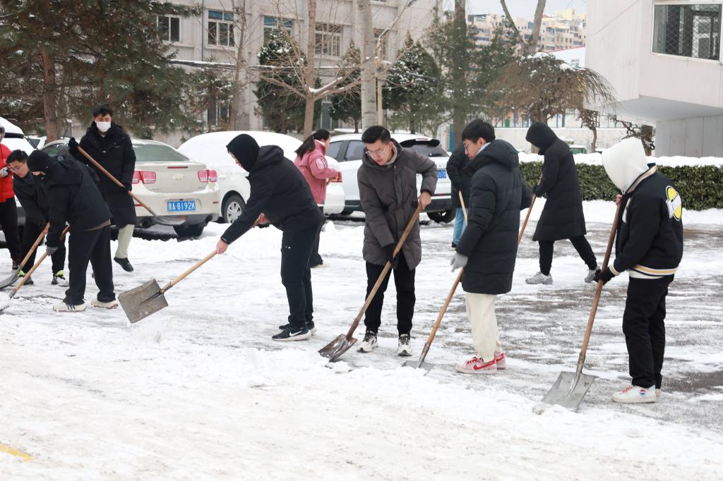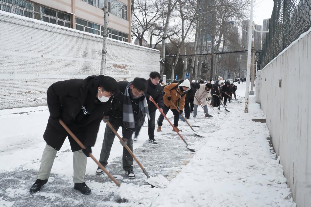 雪后显文明 扫雪我先行——太阳成集团tyc122ccvip组织开展 校园道路扫雪铲冰活动