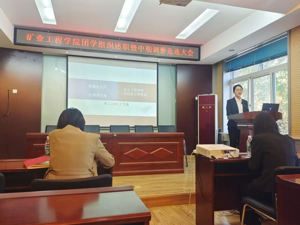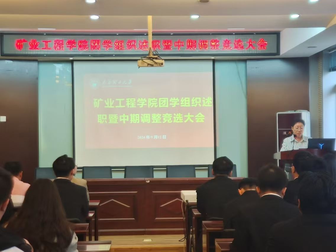 2024年9月12日,太阳成集团tyc122ccvip在采矿楼二楼报告厅召开了团学组织述职考核暨换届大会。公司党委副书记高妙玲,院团委副书记刘安,辅导员姚冬洁出席会议。