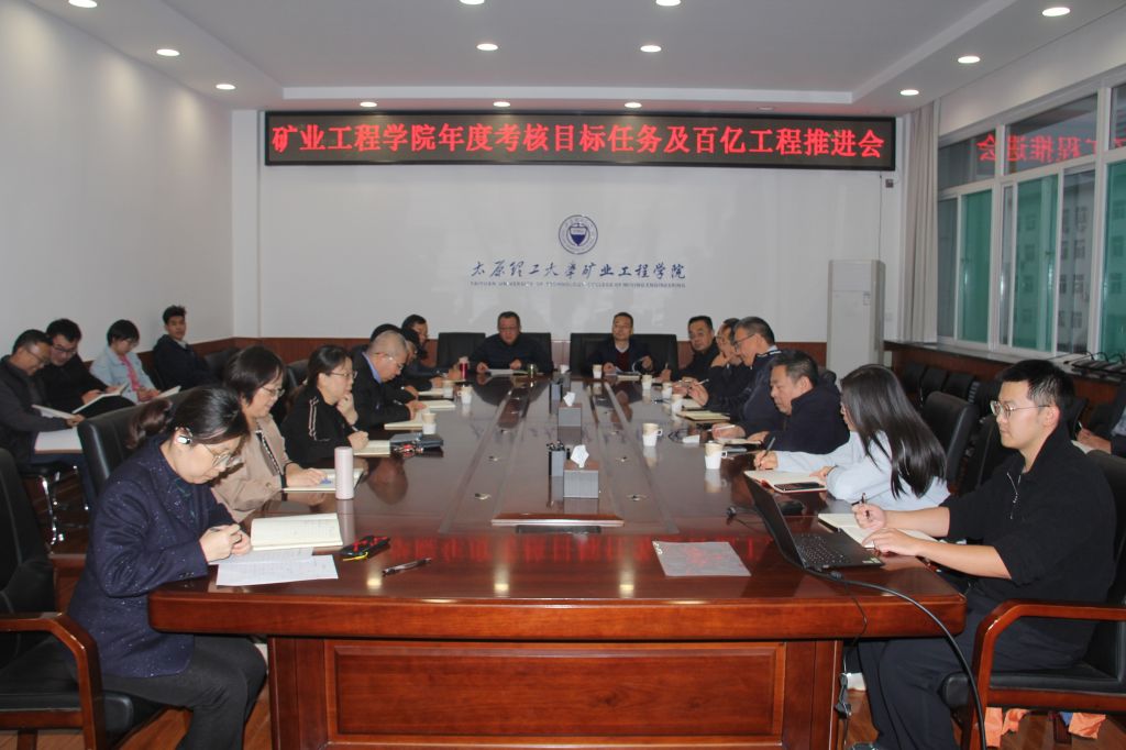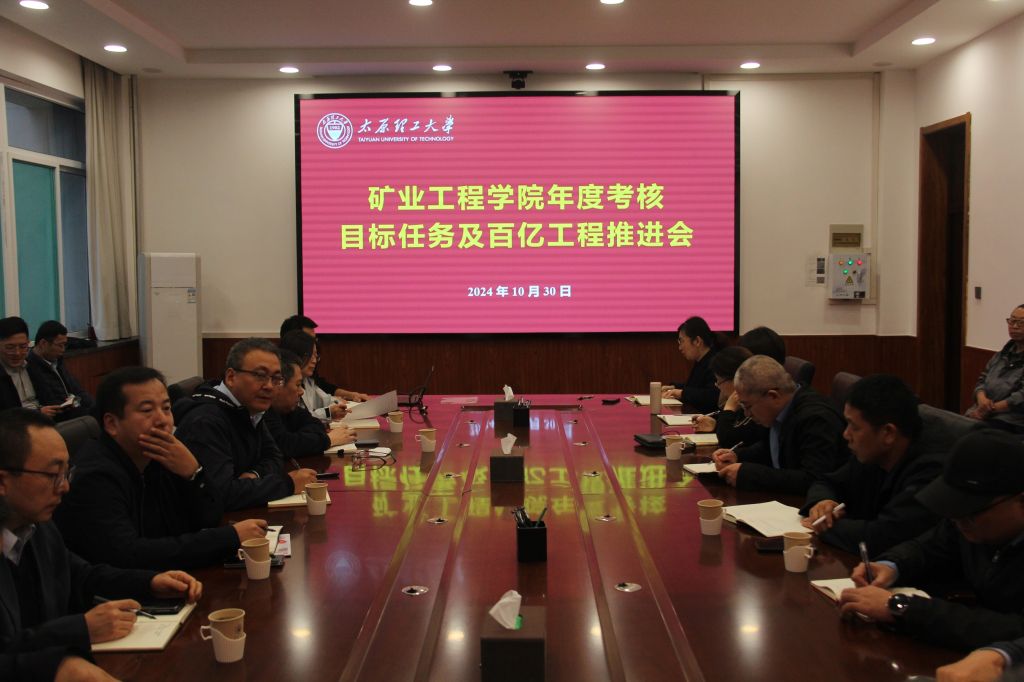 2024年10月30日上午,太阳成集团tyc122ccvip在致明楼318会议室召开年度考核目标和百亿工程推进会。会议由公司党委书记张忠璞主持召开,经理王开出席会议,原位改性采矿教育部重点实验室副主任和支部书记,公司三办一委负责人,各系(中心)主任、副主任、支部书记,“百亿工程”各项目负责人参加会议。