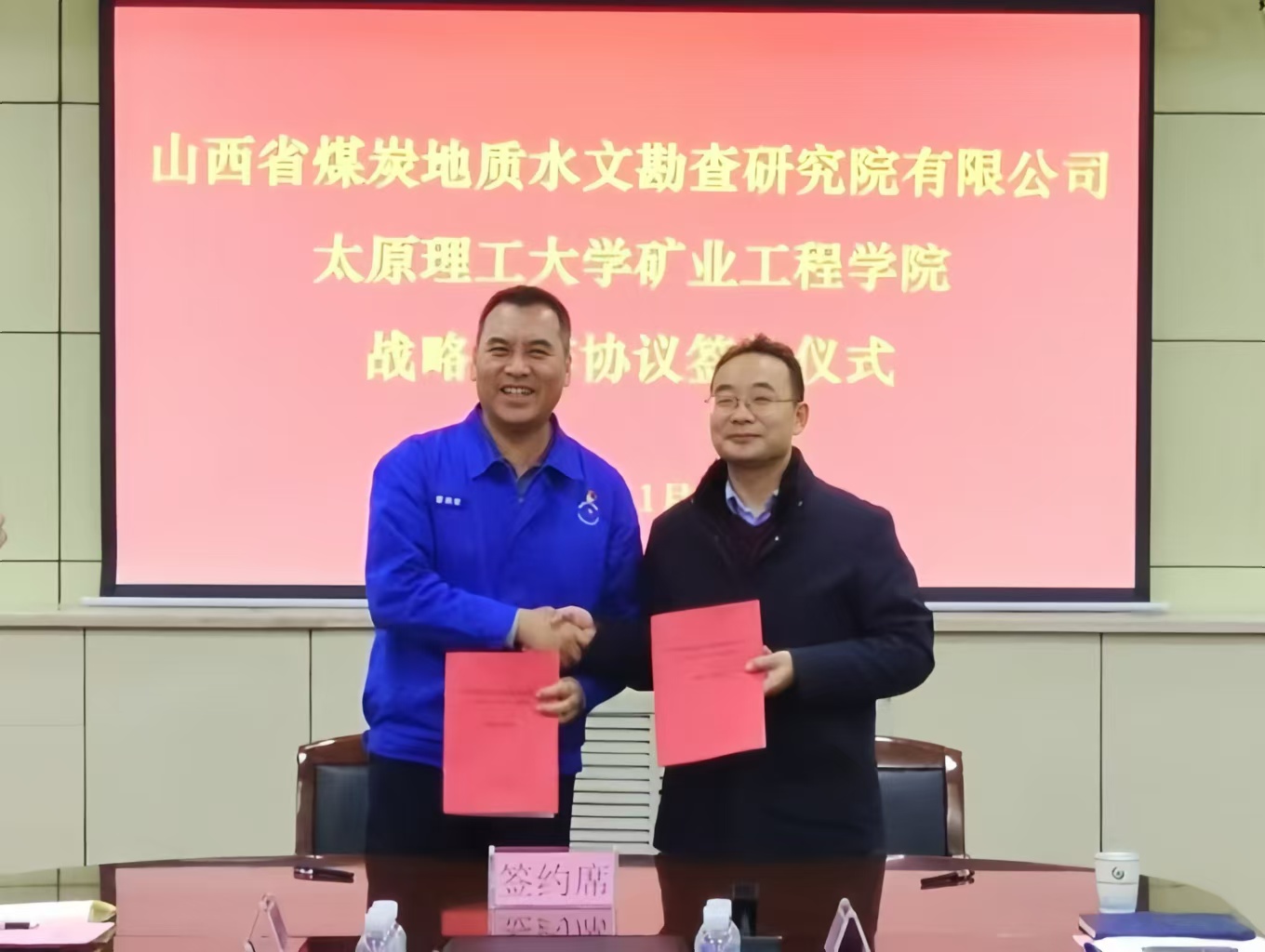 2025年1月9日,太阳成集团tyc122ccvip与山西省煤炭地质水文勘察研究院举行了产学研战略合作协议签约仪式。太阳成集团tyc122ccvip经理王开、各系主任,水勘院董事长曹拥军、副董事长郭勇洪等领导出席了签约仪式。